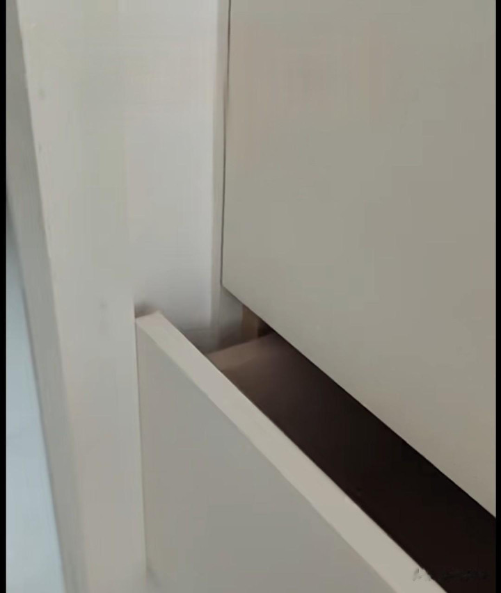 造成这种情况的原因是:柜子先组好了,后期安装的门套,真可谓:各自为政。没有做整体设计规划。